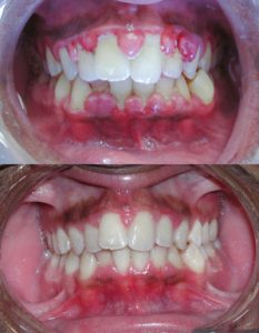(In Alto) gengivite grave prima del trattamento.